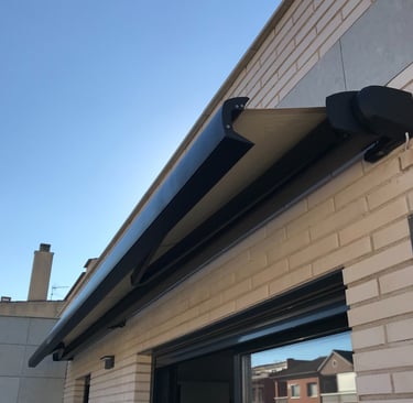 El sistema cofre protege la lona de las inclemencias del tiempo, además de suavizar la imagen de la fachada de su casa.