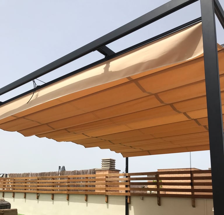 Estructura de madera o aluminio perfecta para proteger del sol con un toldo corredero.